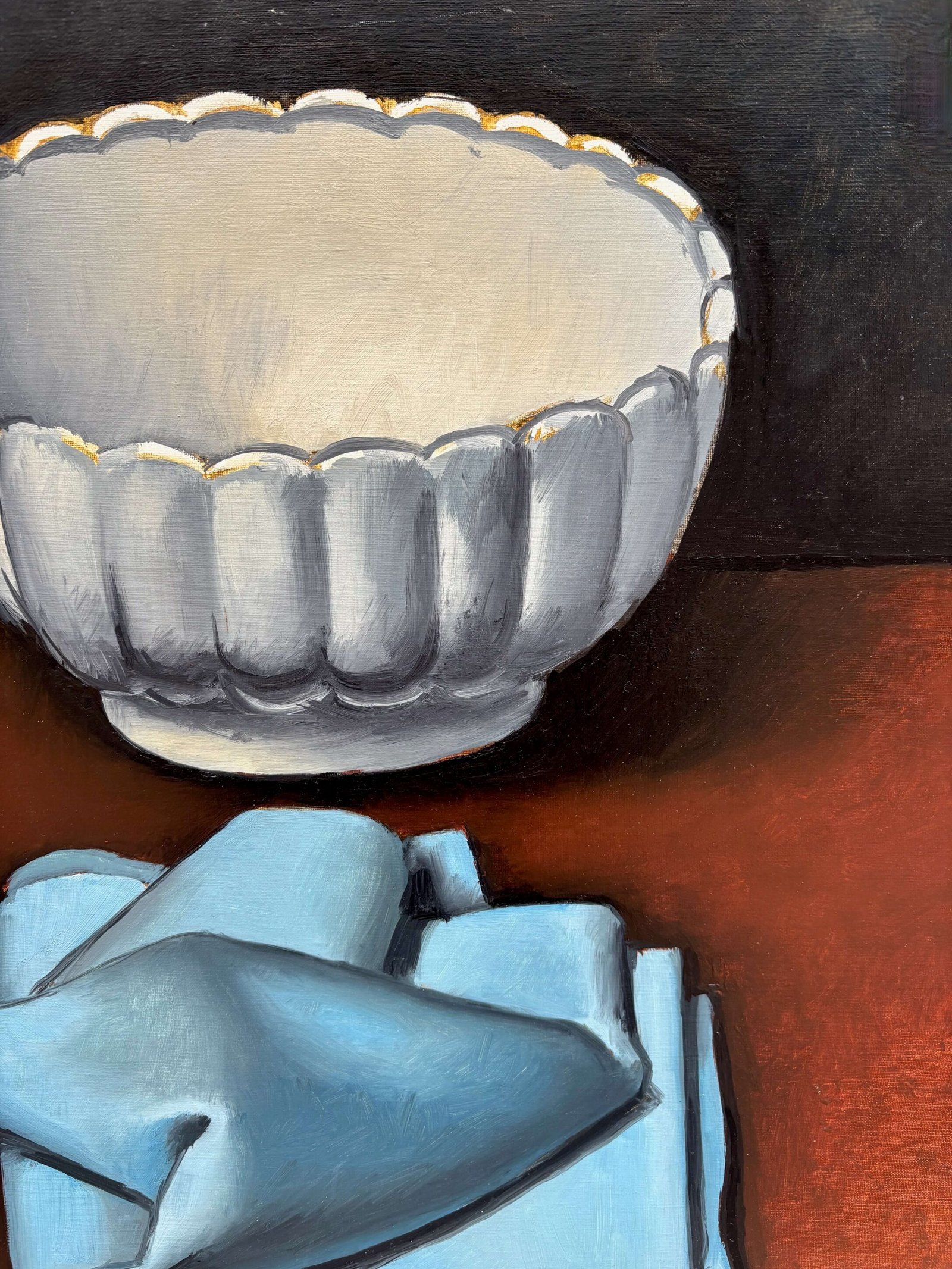 Coupe, verre et étoffe bleue